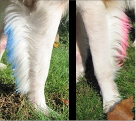 Temporary Colour - ChalkA pleasing pastel highlight that is fully removed in one or two baths. Safe and non-toxic. Shows best on light coloured dogs. Slight risk of colour transfer when exposed to moisture. Many colours to choose from! $ 5 and up |